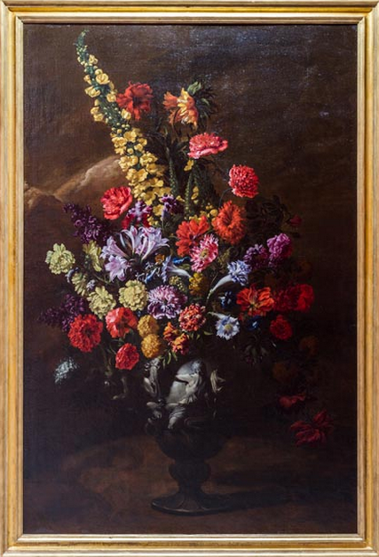 The painting, entitled "Flowers" by Italian artist Paolo Porpora, dates back to the 1600s and is part of a collection of 55 artworks on show in the country's capital.